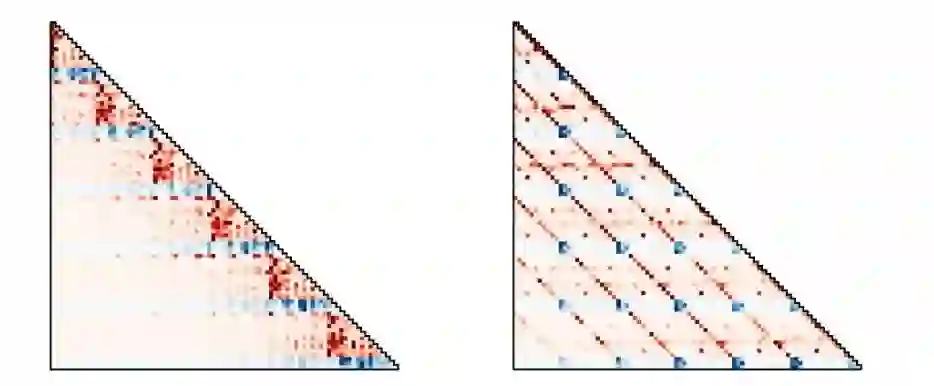 由于 TT 基本上把所有序列预测的任务都交给了 Transformer,Transformer 就能更加灵活地从数据中学习出更好的图结构。如下图,TT 建模出的行为策略根据不同的任务和数据集展现出不同的图结构。图左对应了传统的马尔可夫策略,图右对应了一种动作滑动平均的策略。