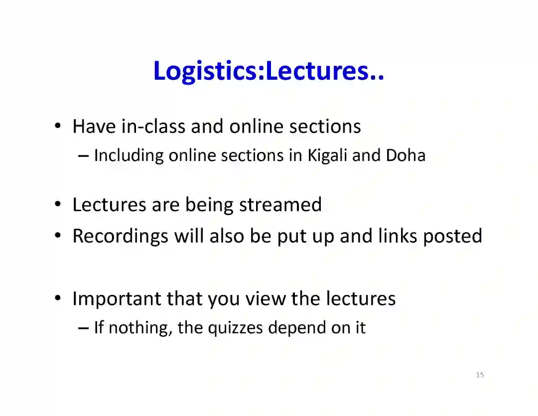 该课程不使用特定的某一本教材,而是会从许多资料中整理获得。 我们在本页末尾列出相关书籍。 我们也会为每个班级挂上相关的阅读材料。学生可以在课前熟悉这些材料。你阅读的时候可能会遇到障碍,但是不需要担心,我们会在课堂上进行简单的解释。