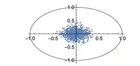 图 3:50 维度的球体(50-dimensional ball)和蒙特卡罗抽样结果的二维图像
