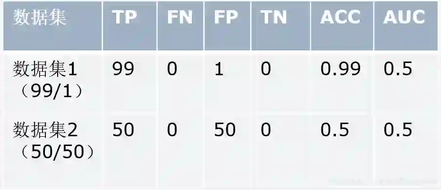 假设我们模型的效果非常差,它会将所有本测试样本标记为恶意样本,这样我有两个数据集,一个样本包括100个数据(99个恶意样本、1个非恶意样本),另一个样本包括50个数据(50个恶意样本、50个非恶意样本),如果我单纯的计算ACC,第一个样本的结构是0.99,显然不符合客观的描述,不能用来评价性能高低的,并且这种情况是很容易产生的。所以论文中广泛采用AUC指标。