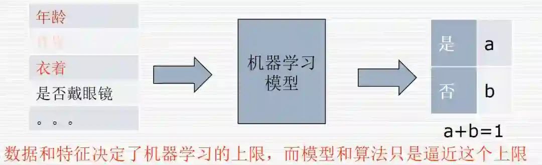 例如,在路边预测一个人是否是学生,假设我们不能去询问,只能通过外表去预测他是否是一个学生,包括:年龄(低于15岁就是学生)、性别(不影响学生)、衣着(穿着活泼年轻的可能是学生,如果穿着西装可能性就小)等等,然后根据这些特征输入机器学习模型,从而判断是否是学生。