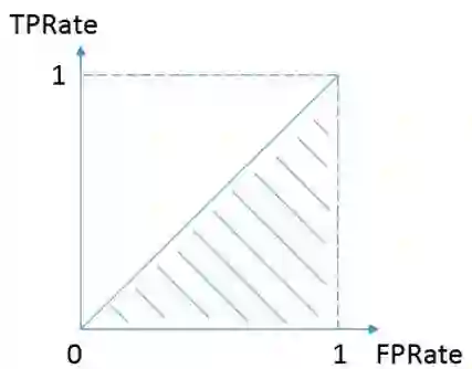 AUC指标包括TPRate和FPRate,然后得到一个点,并计算曲线以下所包围的面积即为AUC指标。其中,TPRate表示分类器识别出正样本数量占所有正样本数量的比值,FPRate表示负样本数量站所有负样本数量的比值。举个例子,我们撒网打鱼,一网下去,网中好鱼的数量占池子中所有好鱼的数量就是TPRate,而FPRate表示一网下去,坏鱼的数量占整个池子中所有坏鱼的数量比例,当然FPRate越小越好。最好的结果就是TPRate为1,而FPRate为0,此时全部分类预测正确。