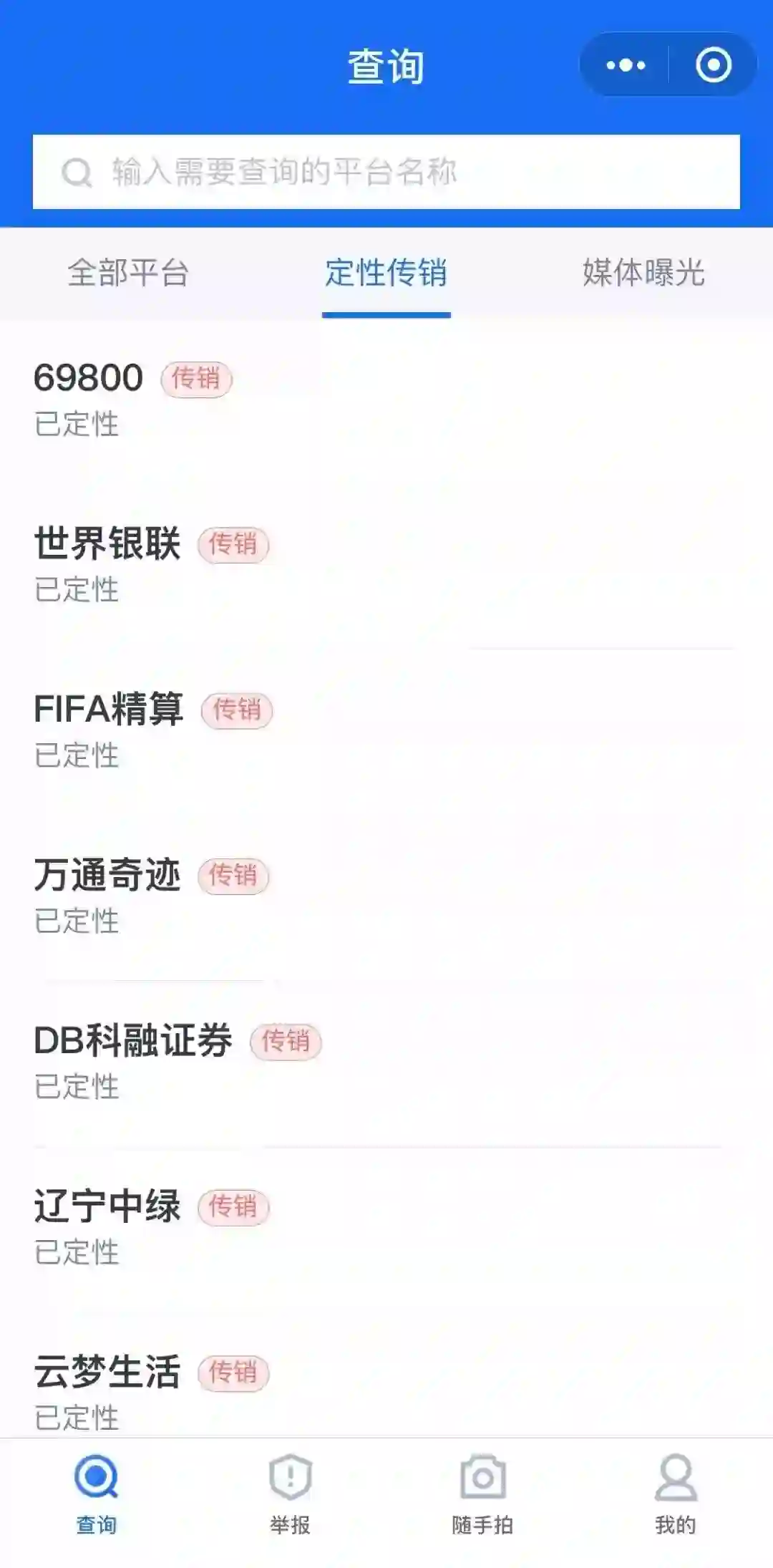 当用户遇到疑似骗局或传销组织时,可以使用查询功能,输入相关组织名称,查看它是否被用户举报、媒体曝光或者公安立案。