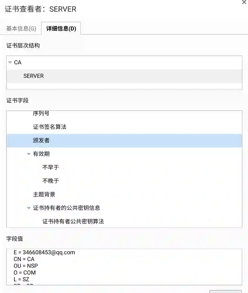 从提示的这个不受信任的证书的颁布者来看是一个QQ号:346608453@qq.com。