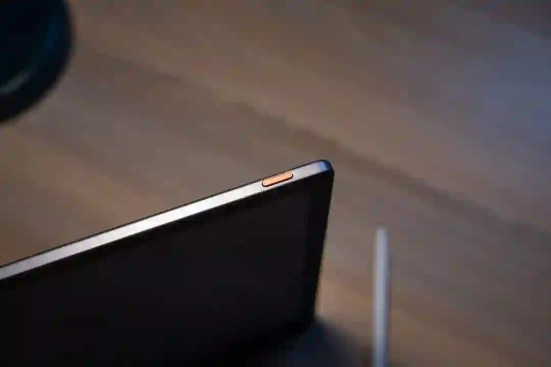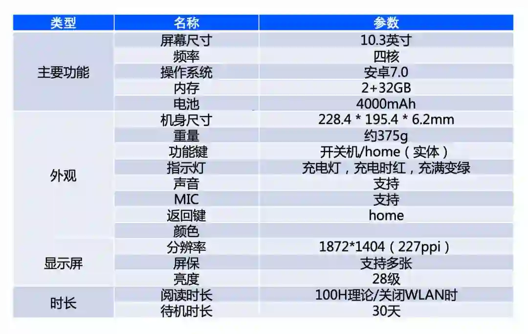 他还有28级调节的冷暖双色的背光灯,冷色让你在办公的时候更有效率感,暖色让你在家夜晚读书时更有温暖的感觉。整机重量约375g,厚度6.2mm可谓非常轻薄。正面还有一颗Home键,跟手机的Home键一样的功能,顶部有一颗红色的电源键,红色,有点意思。