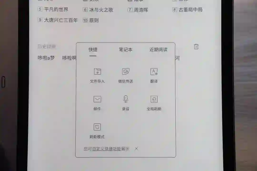 既然是个电子阅读器,那么自然购书的渠道少不了。他书城里面书籍也是相当丰富,例如最近很火的《沉默的真相》原著《长夜难明》,夏目漱石的《我是猫》等等。还有一些音频读物。喜欢读书的小伙伴一定很喜欢!还能调节刷新率,三个档位,适合不同的模式。