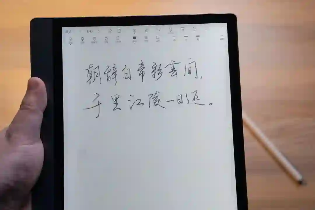 他配备了一块10.3英寸,分辨率为 1872*1404,227ppi 超大的电子墨水屏。表面是类纸质的触感,用他附送的这支笔写字的时候,那沙沙声,就像真的在纸上书写。