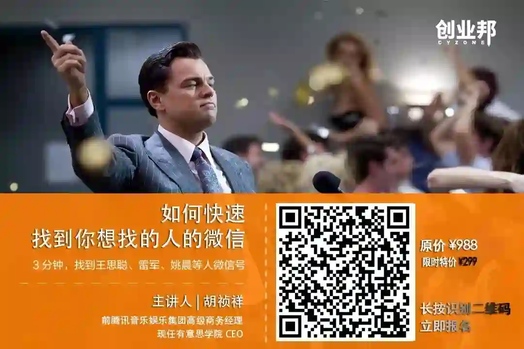 (3)春节限时特价!现加入创业邦会员,仅需1098!再送300元无门槛优惠券,并获得40+堂价值4888元的CEO创业必备课程、12本有声书、12节爆款课程,4000+创业人脉、行业、地区各个社群资源对接;千元文档大礼包;免费参加创业邦全年3次峰会及无限次参加全国12座城市线下所有活动!扫码即可获得: