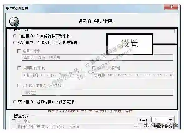 步骤8:设置用户权限,在弹出的对话框中有3个选项,一个比一个权限低,可根据实际情况设置。