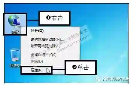 步骤1:单击“属性”命令,右击桌面上的“网络”快捷图标,在弹出的快捷菜单中单击“属性”命令。