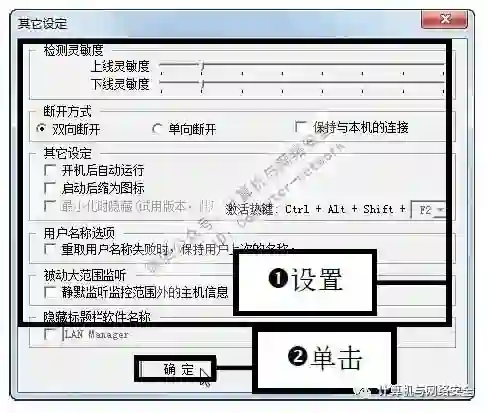 步骤16:设置检测的灵敏度和断开方式,在该对话框中可以设置检测的灵敏度、断开方式以及其他一些参数,设置后单击“确定”按钮。