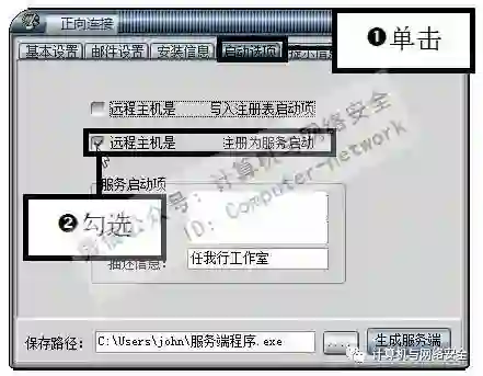 在选择配置类型时,如果不知道双方所处的网络类型,则可以将生成后的“正向连接”和“反向连接”的服务端程序都在远程计算机上运行一下,进行“正向连接”和“反向连接”的尝试控制。