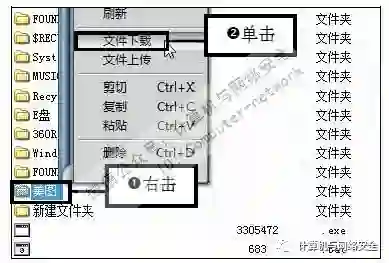 步骤9:下载目标计算机中的资料,这里可以下载目标计算机中的一些重要资料,右击要下载的文件或文件夹,在弹出的快捷菜单中单击“文件下载”命令。
