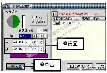步骤6:输入扫描的IP地址范围,弹在“扫描远程主机”对话框,输入扫描的范围,然后单击“扫描”按钮,搜索后再将其添加到前面的IP列表中即可。