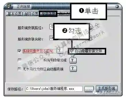 “远程控制任我行”既不是一款纯粹的木马软件,也不是一款传统意义上的远程控制软件,而是介于这两者之间。因为它既具有普通远程控制软件的特点,又有木马程序的特点,下面介绍配置服务端程序的操作方法。