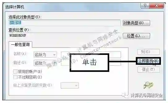 步骤4:单击“立即查找”按钮,在“选择计算机”对话框中单击“立即查找”按钮。