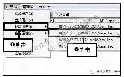 步骤23:删除用户,如果想删除某个用户,那么在菜单栏中依次单击“用户>删除用户”命令,然后在后面弹出的子菜单中选择需要删除的用户即可。
