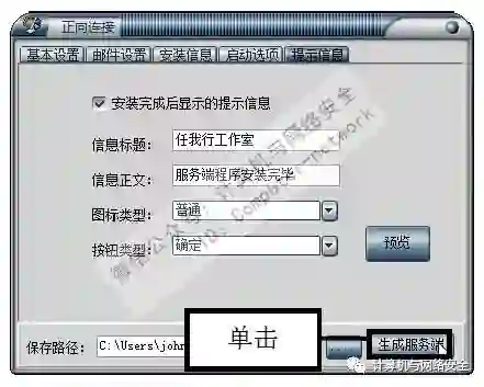 步骤11:单击“生成服务端”按钮,最后设置好生成服务端的保存路径,设置完毕后单击“生成服务端”按钮。