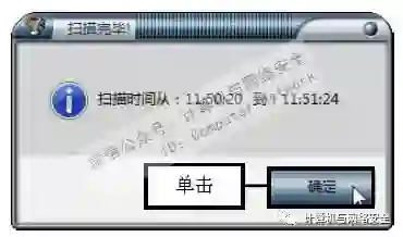 步骤5:查看扫描时间,弹出“扫描完毕”对话框,显示了扫描的开始和结束时间,单击“确定”按钮。