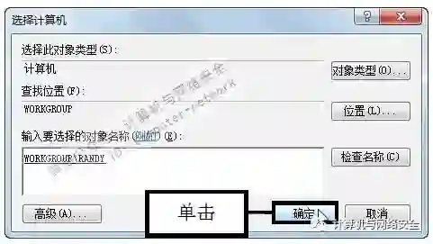 步骤6:单击“确定”按钮,将远程计算机名称添加进“输入要选择的对象名称”文本框后,再单击“确定”按钮即可连接目标计算机。
