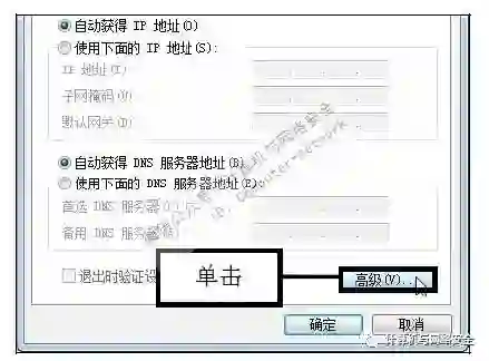 步骤6:单击“高级”按钮,在弹出的“Internet协议版本4(TCP/IPv4)属性”对话框中单击“高级”按钮。