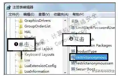 步骤2:双击restrictanonymous键值,在“注册表编辑器”左窗格中依次单击HKEY_LOCAL_MACHINE\SYSTEM\CurrentControlSet\Control\Lsa分支,然后在右边窗格中双击restrictanontymous键值项。