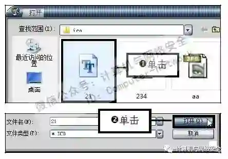 步骤5:选择服务端程序图标,弹出“打开”对话框,在列表框中选择一个图标,然后单击“打开”按钮。