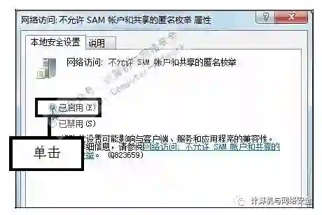 通过设置本地安全策略也可以达到防范IPC$的目的,只需启用“网络访问:不允许SAM账户和共享的匿名枚举”功能即可。
