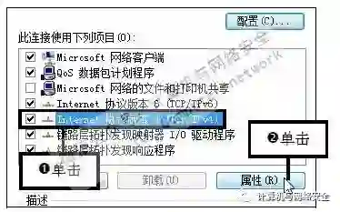 步骤5:单击“属性”按钮,在“本地连接属性”对话框的“常规”选项卡中的列表框中选中“Internet协议版本4(TCP/IPv4)”选项,然后单击“属性”按钮。