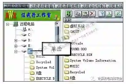 步骤8:查看目标计算机的盘符,在“远程文件管理”选项卡的“远程电脑”目录中就可以看到该计算机所有盘符,在这里完全可以像操作自己的计算机一样操作目标计算机。
