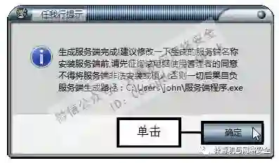 步骤12:单击“确定”按钮,弹出“任我行提示”对话框,提示用户生成服务端完成,单击“确定”按钮。