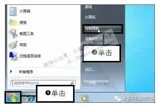 步骤1:单击“控制面板”命令,单击桌面左下角的“开始”按钮,在弹出的“开始”菜单中单击“控制面板”命令。