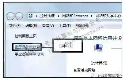 步骤2:单击“更改适配器设置”链接,打开“网络和共享中心”窗口,在左侧单击“更改适配器设置”链接。