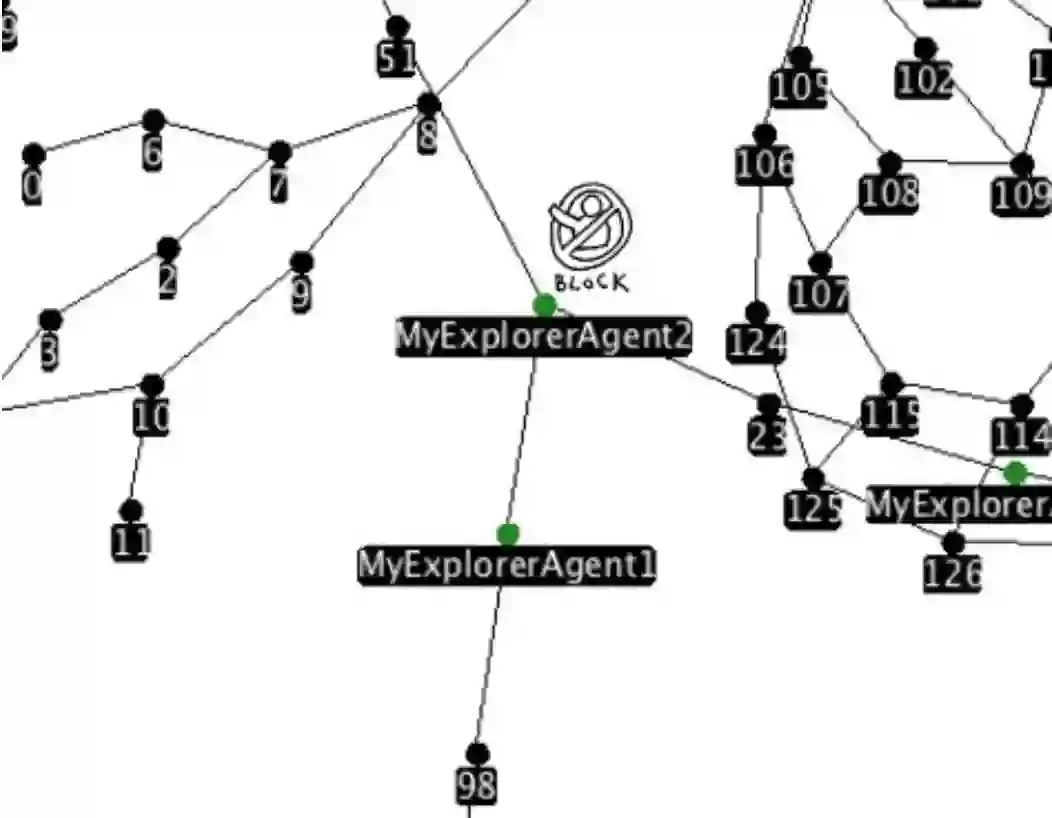 智能体的感知有限,但可以记住过去的观察结果。每个智能体都有自己的世界表征形式、自己的图(真实图的子图)。智能体的子图是它们访问过的所有节点的记忆,以及它们曾经见过或走过的边。它们必须将此图传达给其他智能体,以便它们都可以共享来自所有子图的修复。
