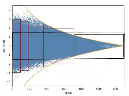 论文对COCO数据集目标的尺寸和长宽比进行统计,并且得到了ratio的上界和下界: