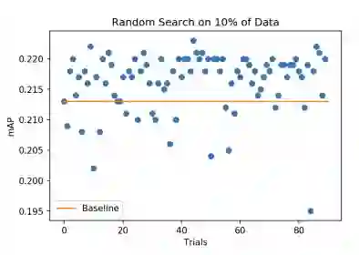 BOHO的完整流程如上所示,可简单地认为将Hyperband的随机采样替换为贝叶斯优化进行采样,然后将Hyperband的超参数组合及其对应的输出加入到观测数据中,用于更新替代模型。需要注意的是,BOHO的替代模型是一个多维核密度估计(KDE)模型,类似于TPE(Tree Parzen Estimator)。如论文提到的,BOHO有一个比较严重的问题,对于难学习的样本,一般需要较长的训练周期,而由于BOHO使用HyperBand进行快速验证,所以不一定能完整地测出超参数的真实准确率,导致最终的结果有偏差。