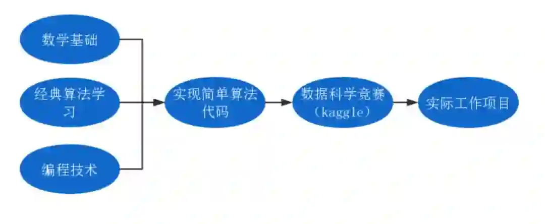 简单的机器学习算法,例如 KNN、K-Means、朴素贝叶斯等,代码能力稍微强一点的读者可以自己实现,然后拿经典数据集去实验,这样更能加深自己对算法的理解。当然更进一步的是可以参加一些算法比赛,提升自己的算法实战能力。