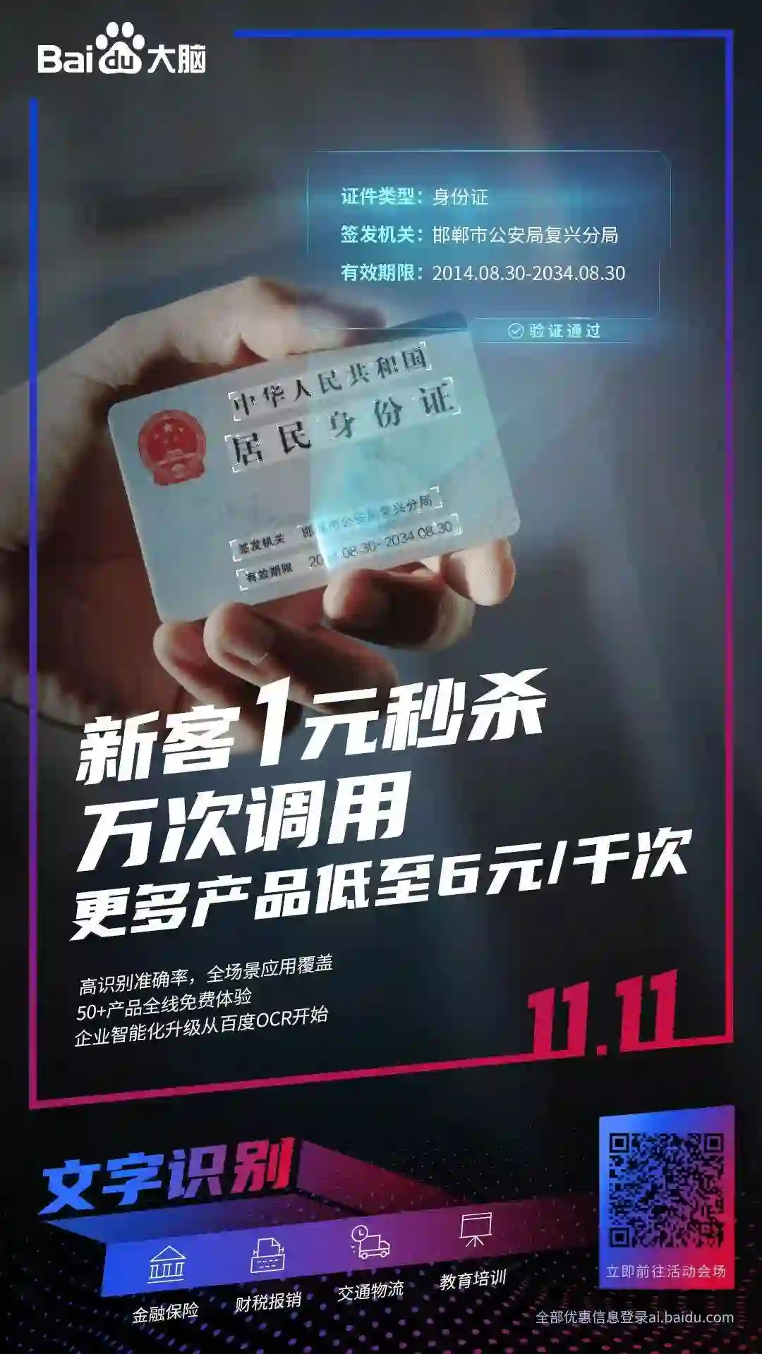 百度大脑文字识别技术提供多种场景下精准的图像文字识别技术服务,超高识别准确率可以让您的应用看图识字,而且提供50+产品全线免费体验~