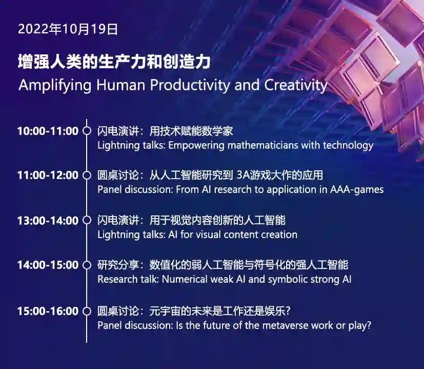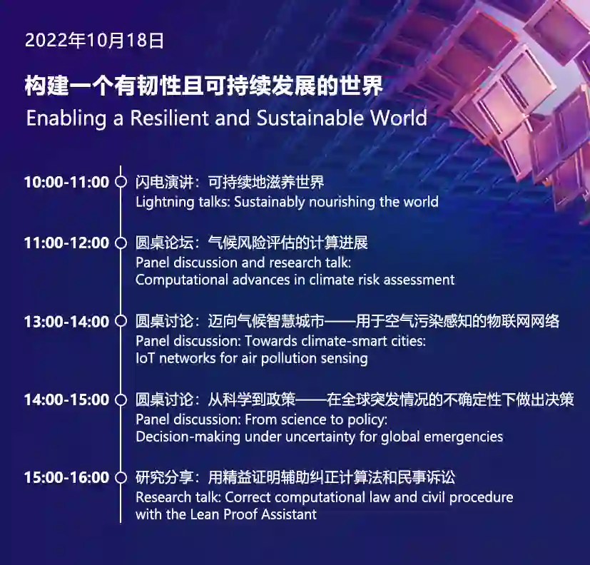 六大专题将从更高效、适应性更强的人工智能,到赋能人类创造力和助力可持续社会发展的技术,引领我们进行深入探究。前三场专题的分享嘉宾们将探讨我们如何才能建构出预测、承受和适应社会危机的能力;我们要如何发展人工智能,有更多机会赋能更多人;科技如何能帮助我们以有意义的方式实现我们的生活和工作目标。其中话题涵盖元宇宙、气候风险评估、智慧城市、大规模人工智能浪潮背后的关键驱动因素等前沿研究,涉及与人类福祉相关的方方面面。