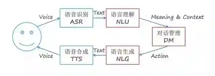 放一张多轮语音对话流程图,理解下 DM 在整个对话流程中处于什么地位。