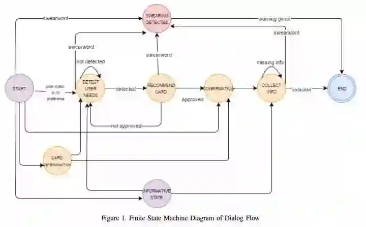 FSM 的状态对应系统问用户的问题,弧线对应将采取的行为,依赖于用户回答。
