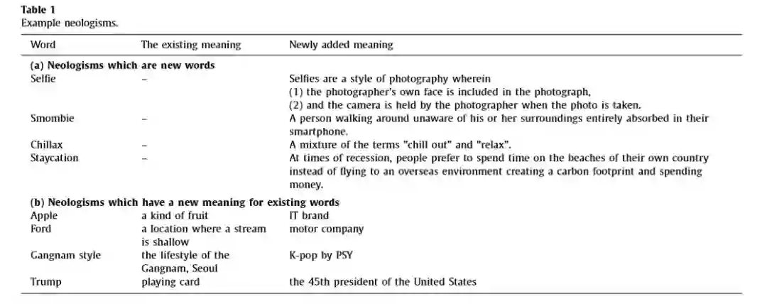 如表1所示,这里的新词分为两种:1.新词新意;2.旧词新意。