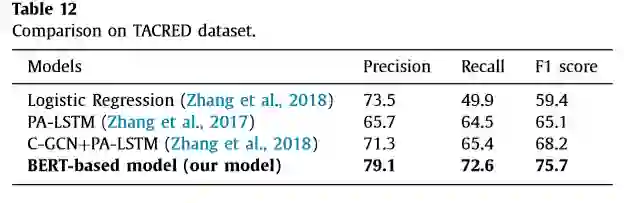 作者验证BERT-based关系抽取模型的效果如下表所示: