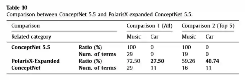 从效果上看,使用PolarisX扩充的ConceptNet涵盖了许多Sonata汽车的信息,下表展示了ConceptNet及ConceptNet+PolarisX两者的一个对比: