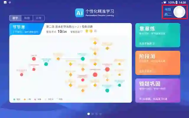 内置的智能错题本,可以帮助判断哪个知识点是学生错题的真正原因。还会对每个用户进行画像、建模,对用户的学习轨迹进行精准判断,从而找出其薄弱环节,及时补上短板。