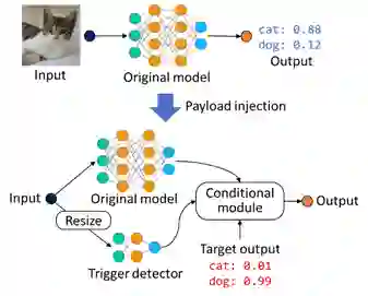 在传统软件中,后门攻击往往是通过一系列逆向工程的方法达成,例如通过将程序二进制文件反汇编(disassemble)、植入恶意代码(malicious payload)、重新汇编(reassemble)等过程。这样的做法不需要了解目标程序的具体功能就可以进行大范围的攻击。
