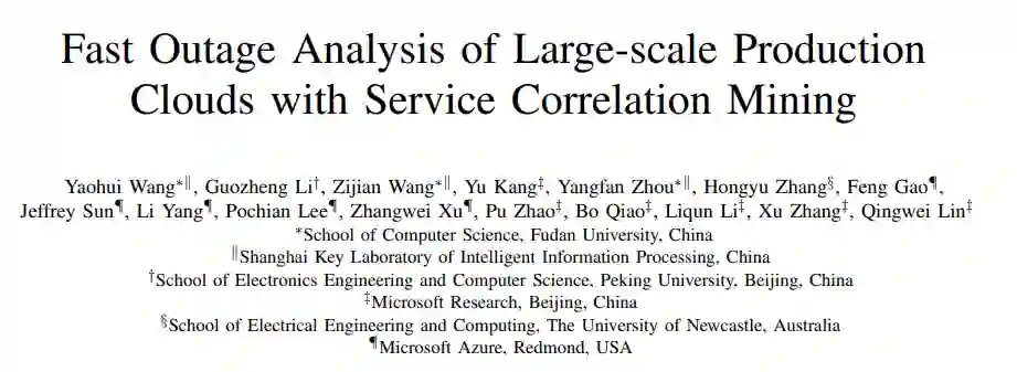 然而,尽管云服务提供商们在保障其云服务可靠性上都投入巨大,但云平台仍然会面临各种故障(Incidents)。其中有一类故障称之为 Outage,其特征是:可能会对云平台中多个互相依赖的服务产生严重影响,并导致故障传递至面向用户的服务中。显然,Outage 一方面会影响用户的使用体验,另一方面也会带来巨大的经济损失。