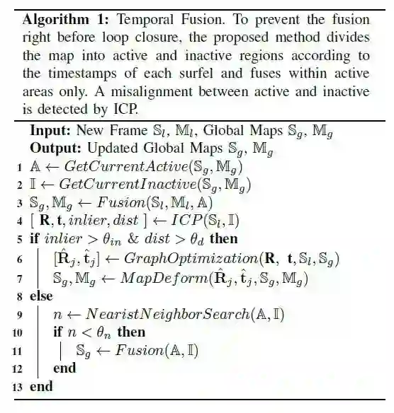 根据timestamp可以选取激活区域和非激活区域,在其中可以利用ICP来检测重叠或误匹配区域。融合算法如下: