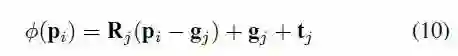 B.图的应用:假设node位置为g,旋转与平移关系为R,t,node影响某点pi的方程可以被定义为: