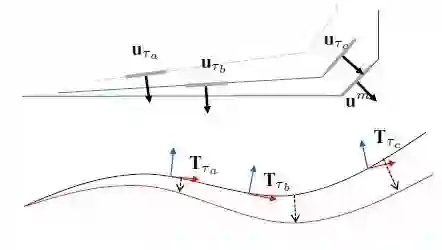 图2. Local trajectory的几何约束。在两个内插的位姿点Ta和Tb可以生成两个surfel模型ua和ub。Local sweep uc和map的先验um之间的几何约束会使整个轨迹适用于地图的先验信息。